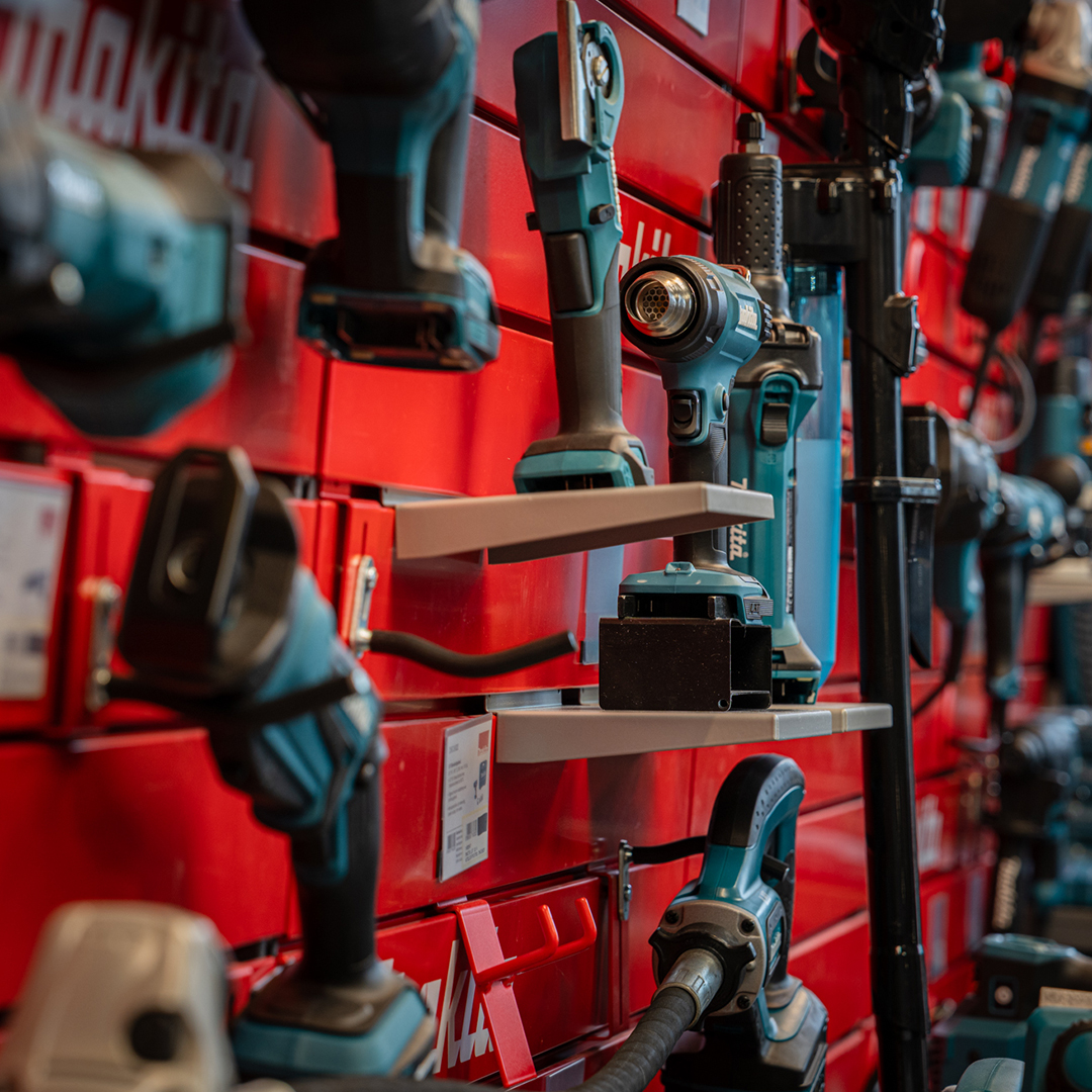 De bedrijfskleding en PBM’s verhuisde naar boven en beneden in het pand realiseerden ze een showroom vol techniek: gereedschap, machines en velerlei technische materialen.